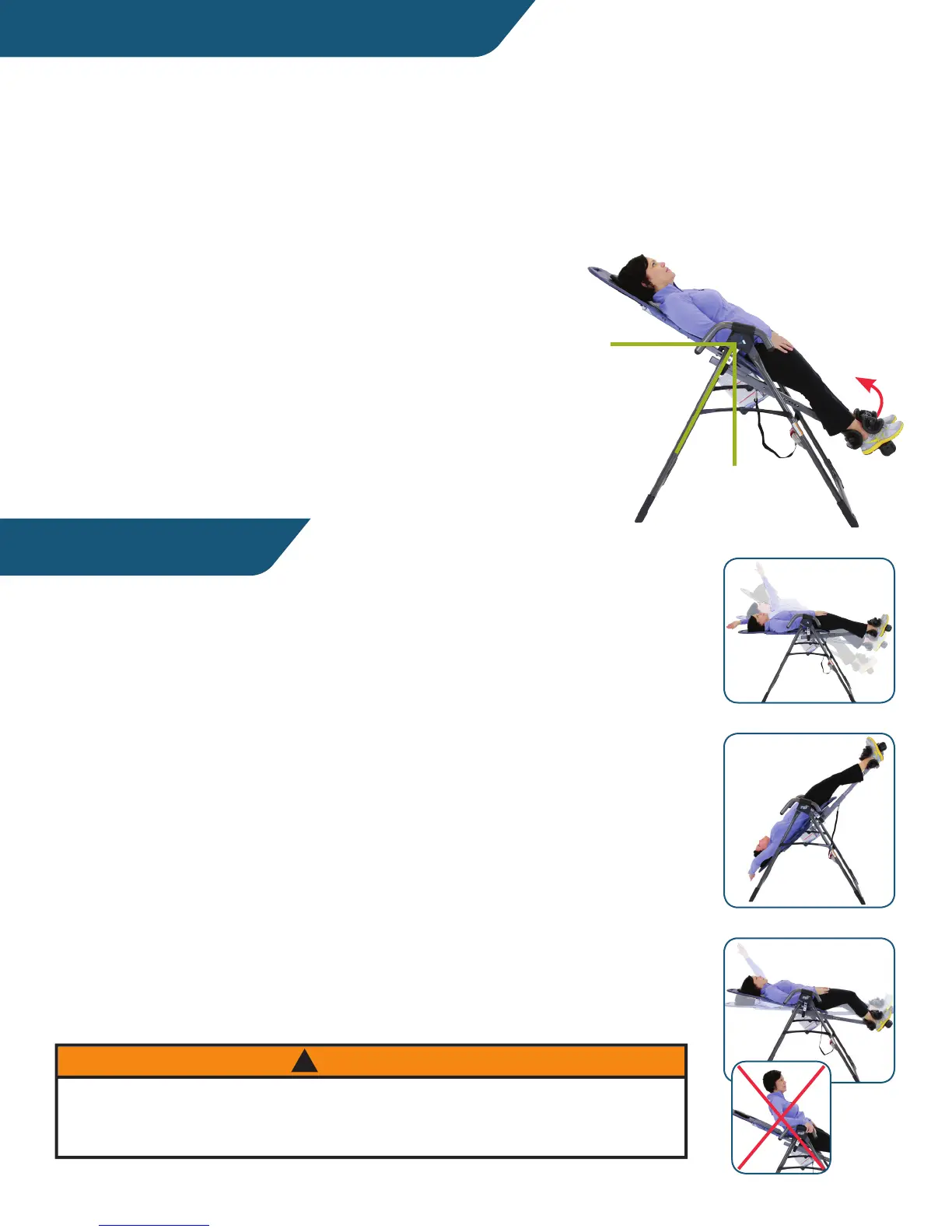 When adjusted properly, you will control the rotation of the inversion table by simply shifting your body weight by moving your arms or