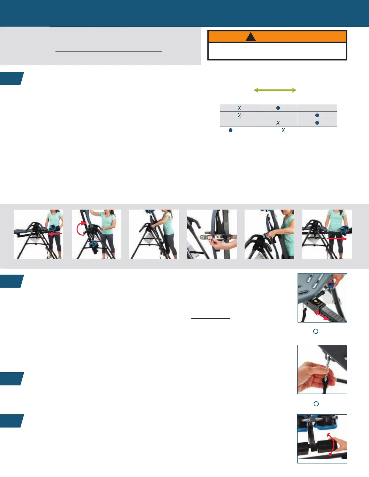 ideal settings. Every time prior to using the inversion table, make