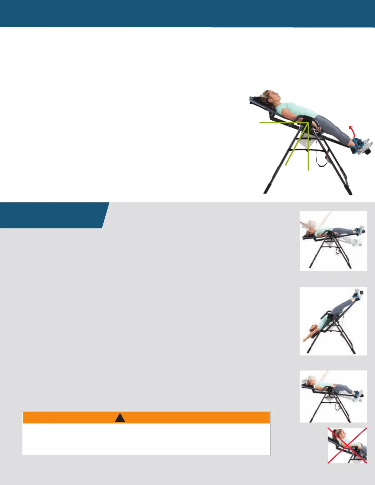 When adjusted properly, you will control the rotation of the inversion table by simply shifting your body weight by moving your arms or