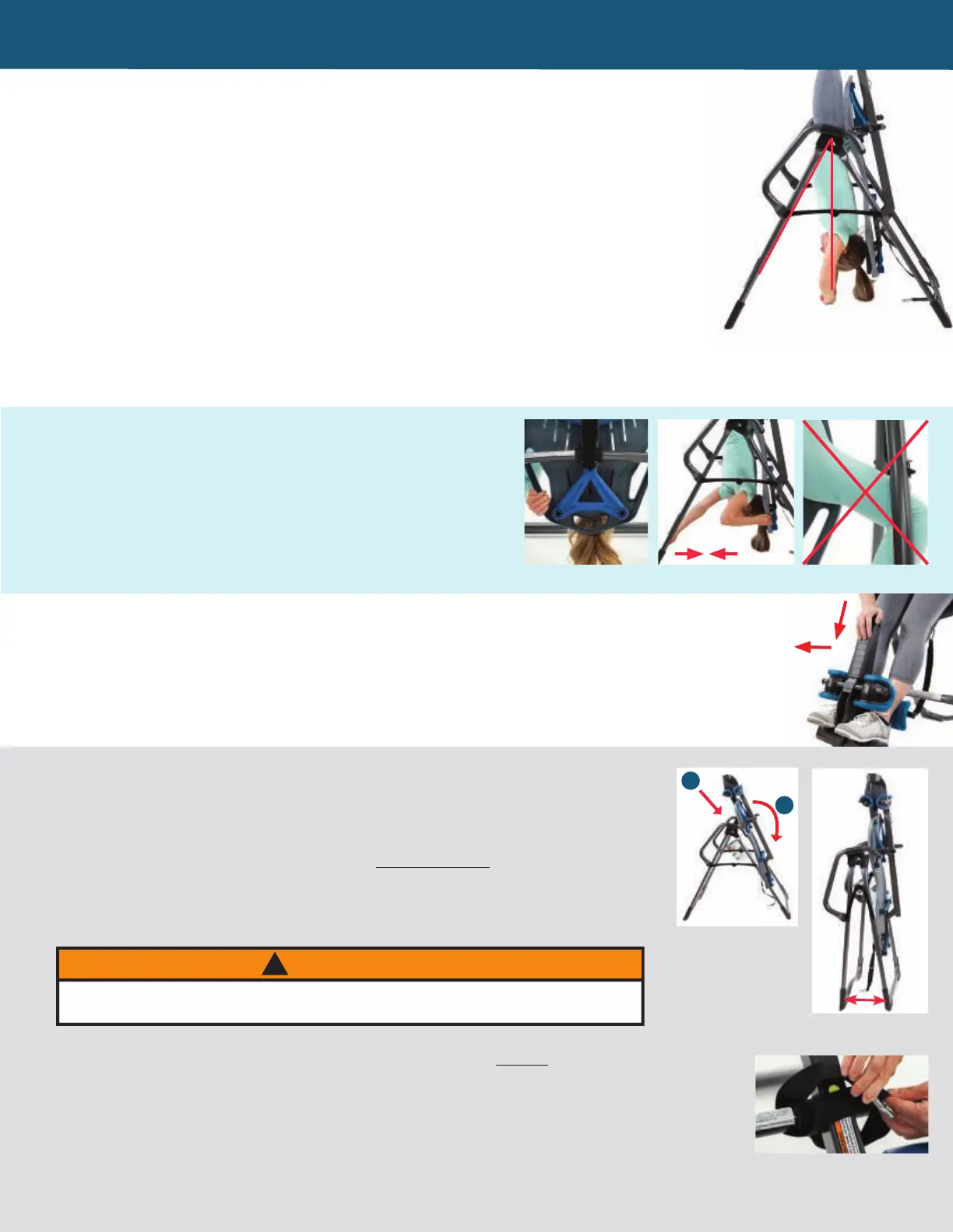 If you opt to leave the inversion table open and ready for use, be sure to SECURE the equipment to deter