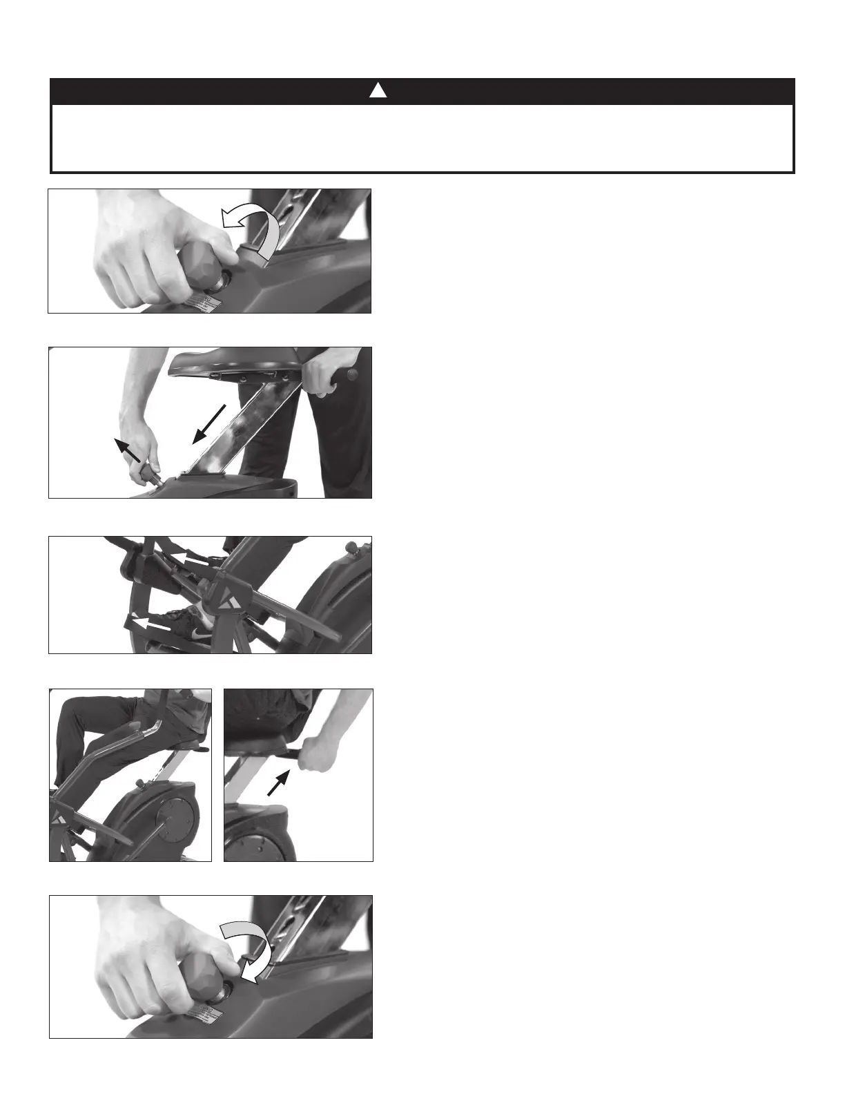 ALWAYS adjust Seat height first before use to avoid injury to the knees. Proper feet