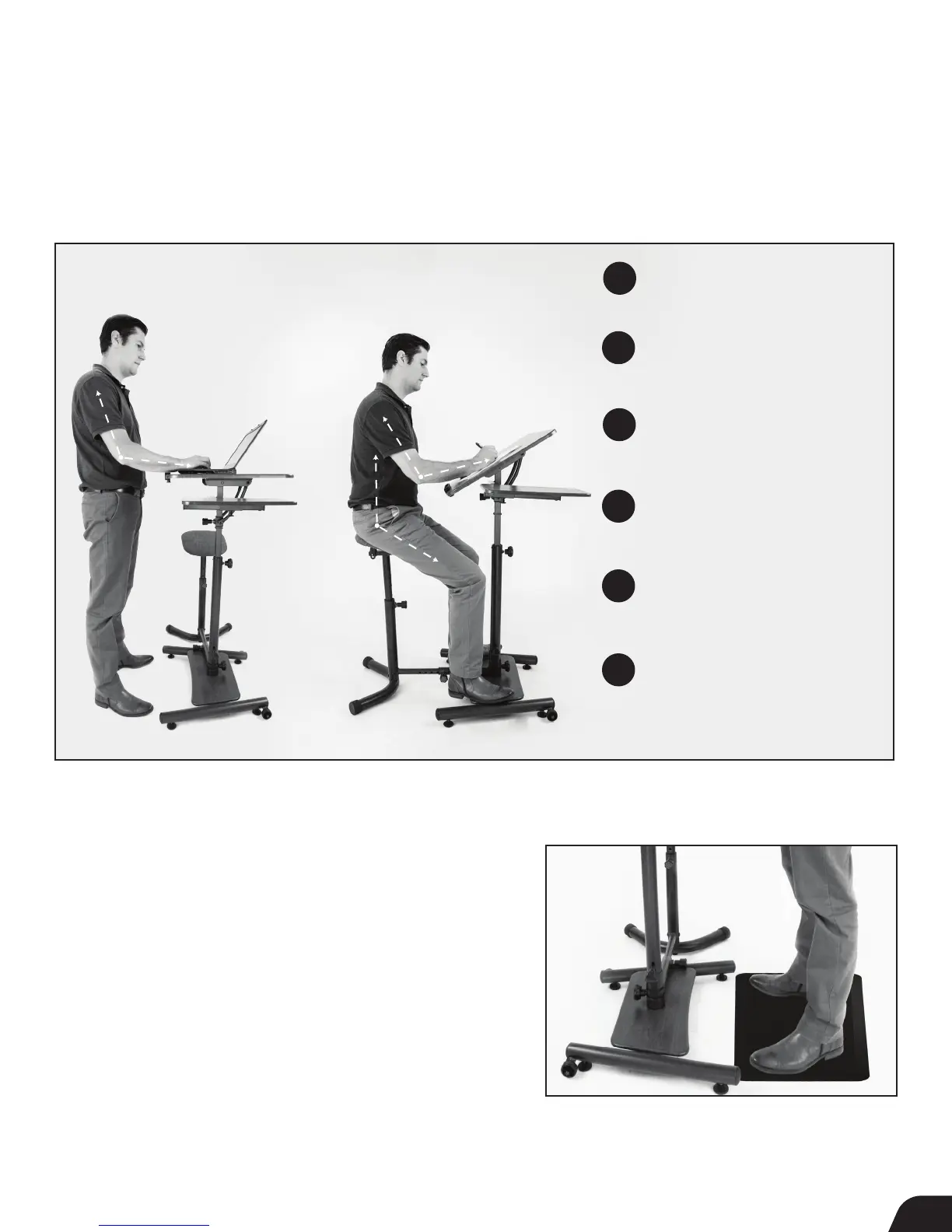 standing, and is sized to fit under the Sit-Stand Desk while not in use.