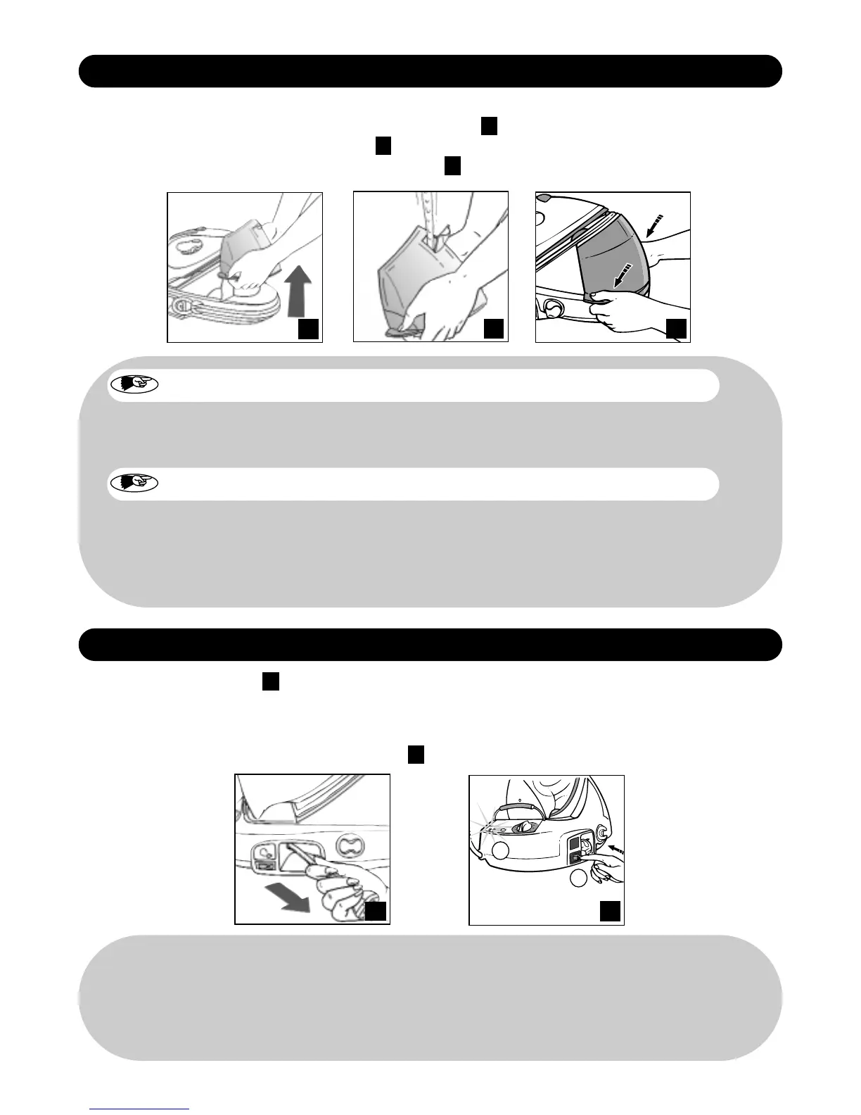 2. Neem het reservoir uit het strijkijzer m.b.v. de handgrepen .