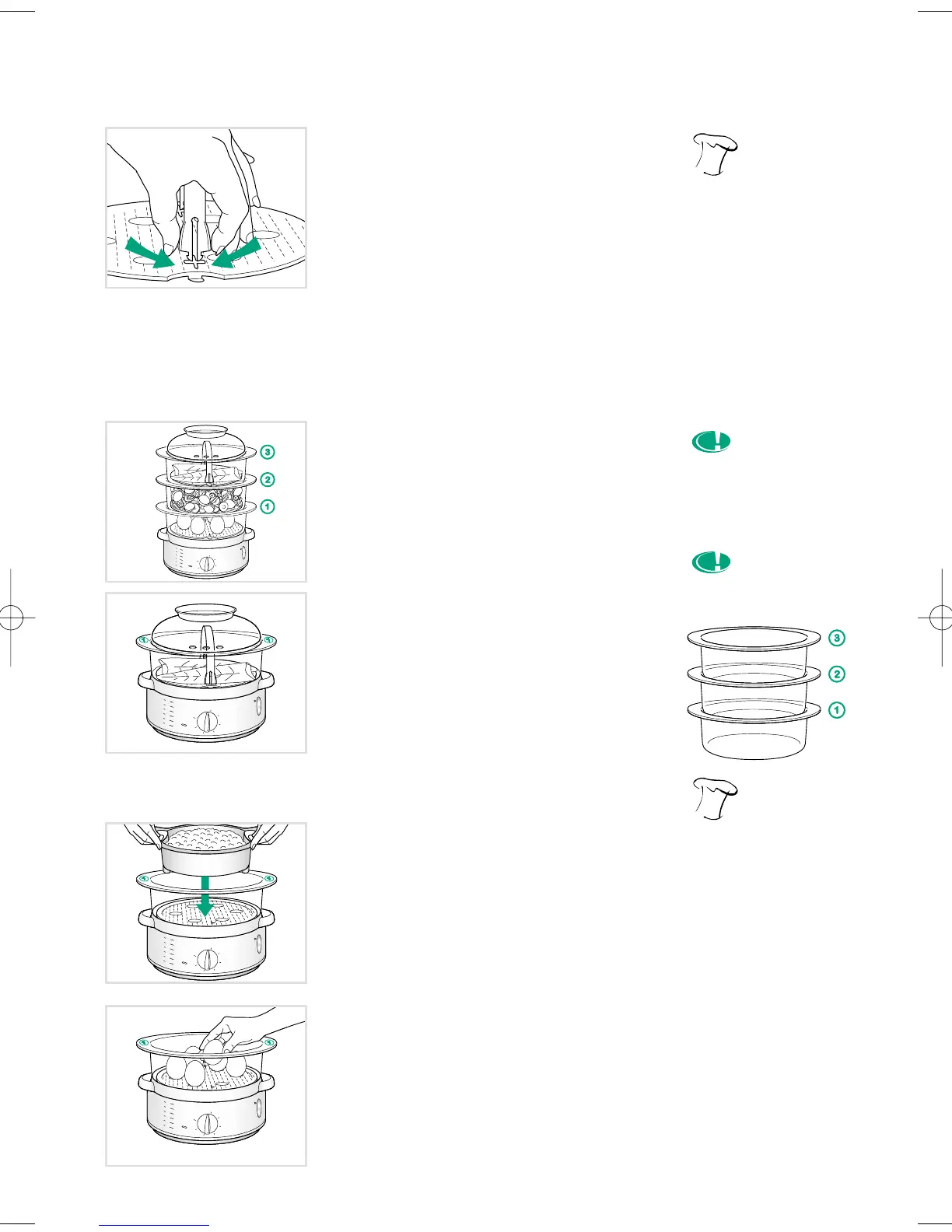• Place the eggs in the built-in egg hol-