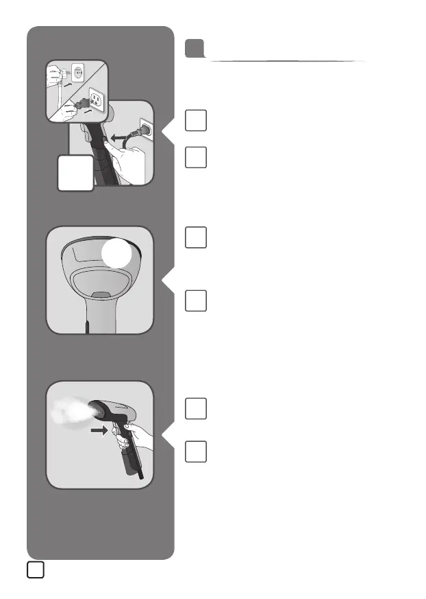 수직으로 세워 잡은 상태에서 스팀 버튼을