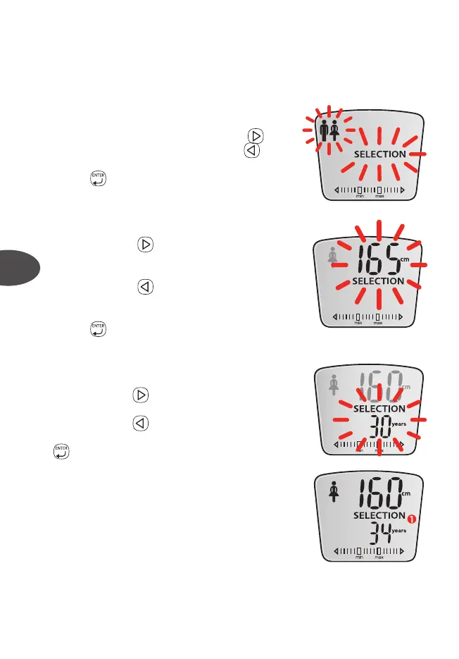 • Svoju výšku potvrďte 2-sekundovým stlačením