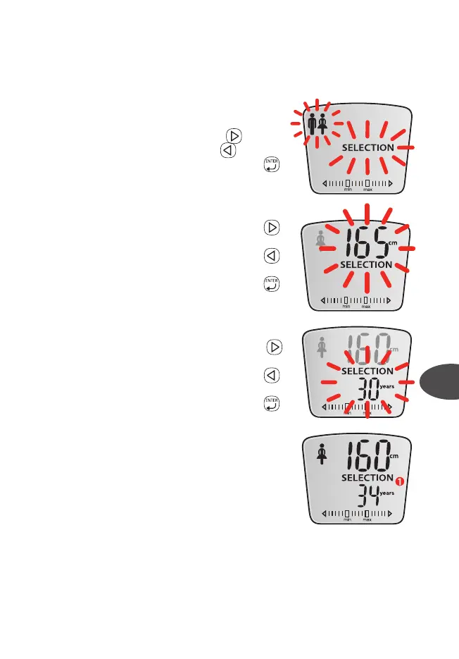 • Če ste ženska, pritiskajte 2 sekundi na .