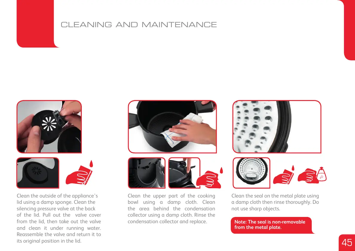 lid using a damp sponge. Clean the
