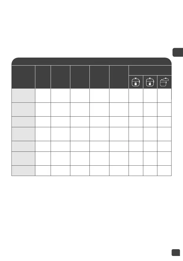 • 请注意,若使用“pressure cooking”(加压烹煮),锅子内必须
