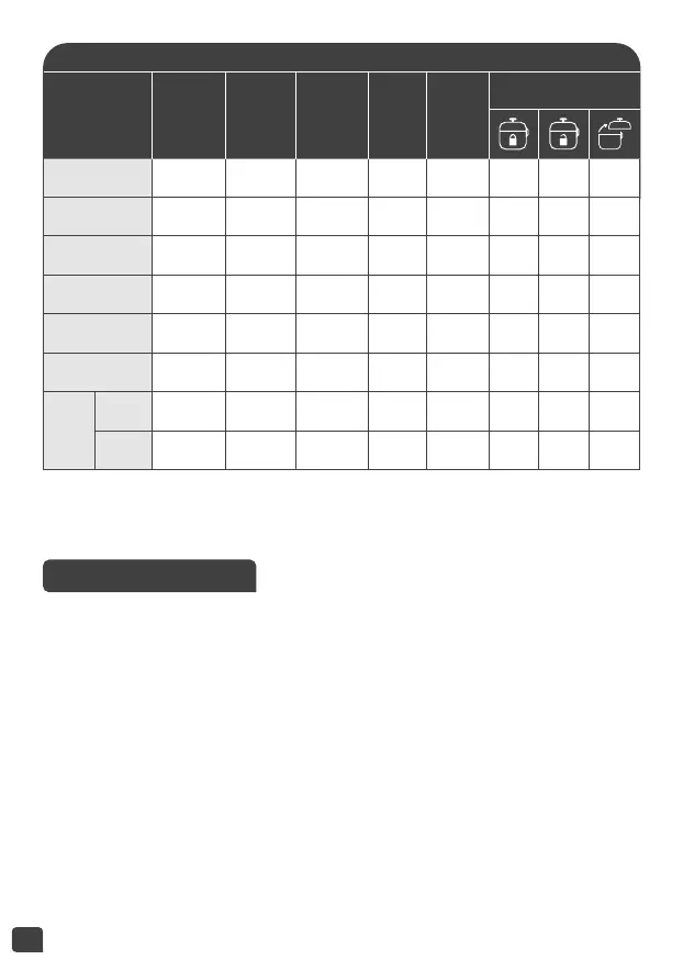 • 一旦您选择了烹饪程序,进入压力状态的时间取决于内锅中食物