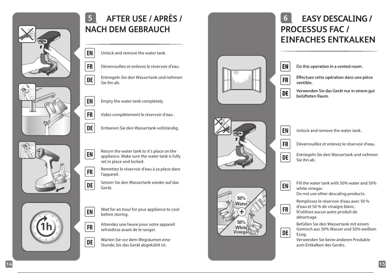 appliance. Make sure the water tank is fully