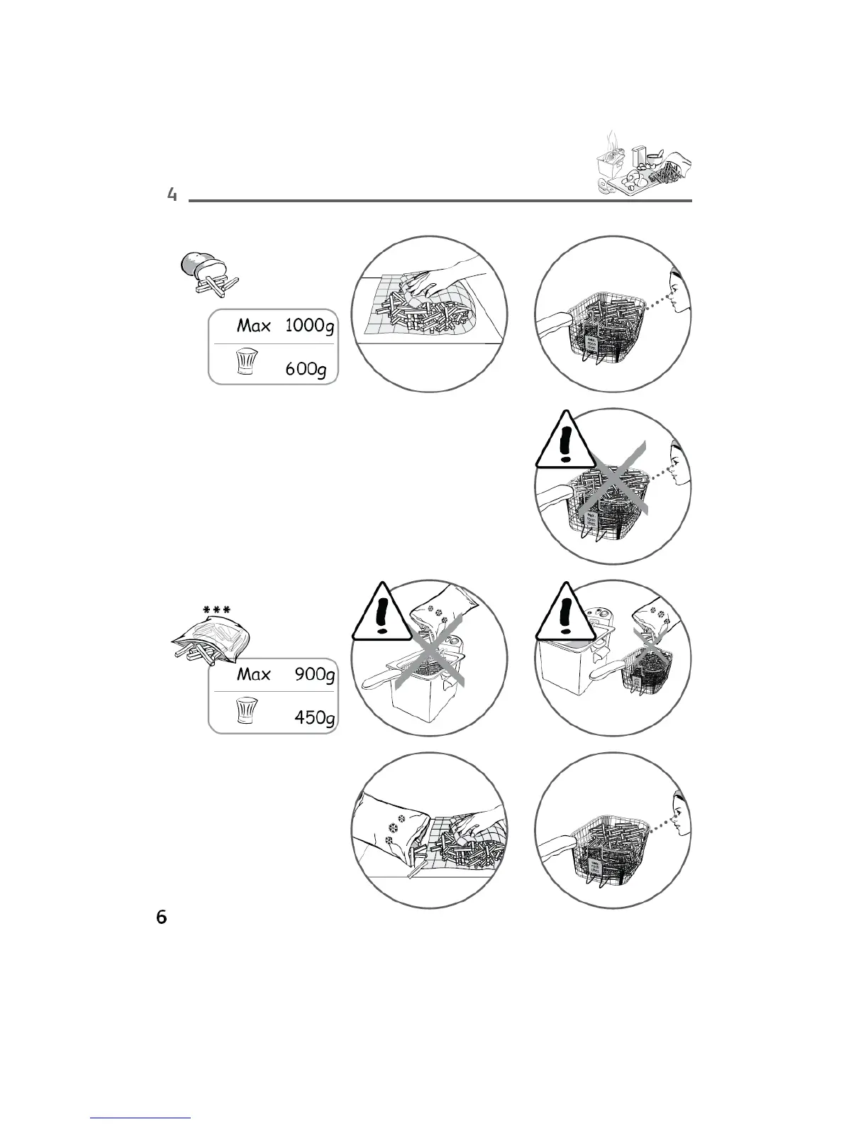 TEFAL EASY PRO - Frying Capacity Recommendations; Frying Basket Weight Limits; Specific Food Weight Guidance