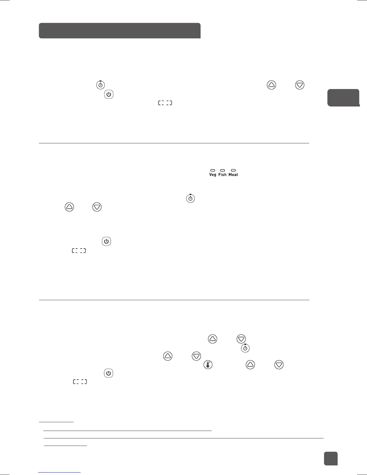 • Stiskněte příslušné tlačítko požadované funkce a na displeji se zobrazí výchozí doba vaření.