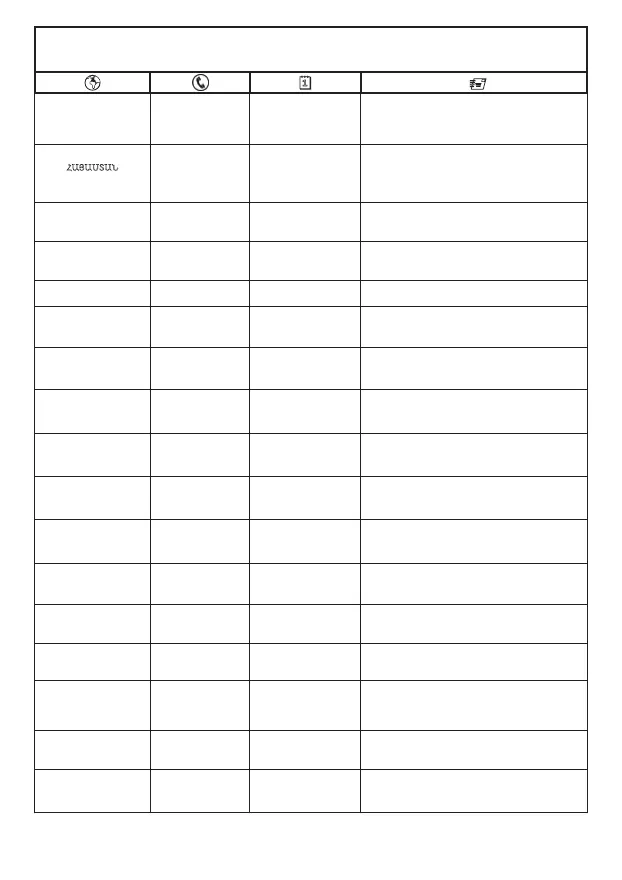 TEFAL/T-FAL INTERNATIONAL GUARANTEE: COUNTRY LIST