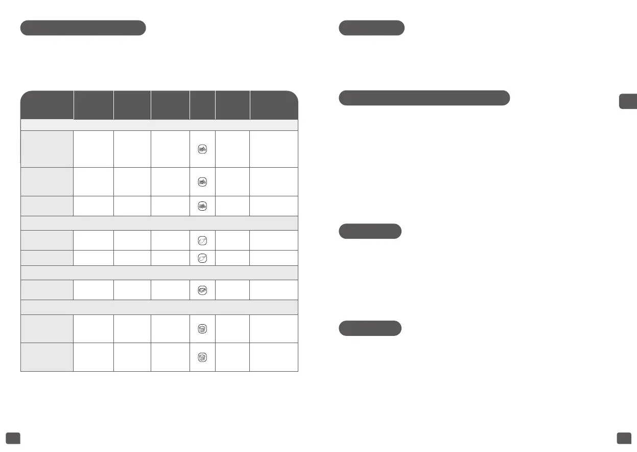 A lenti táblázat segít kiválasztani az elkészíteni kívánt ételekhez illő alapbeállításokat.