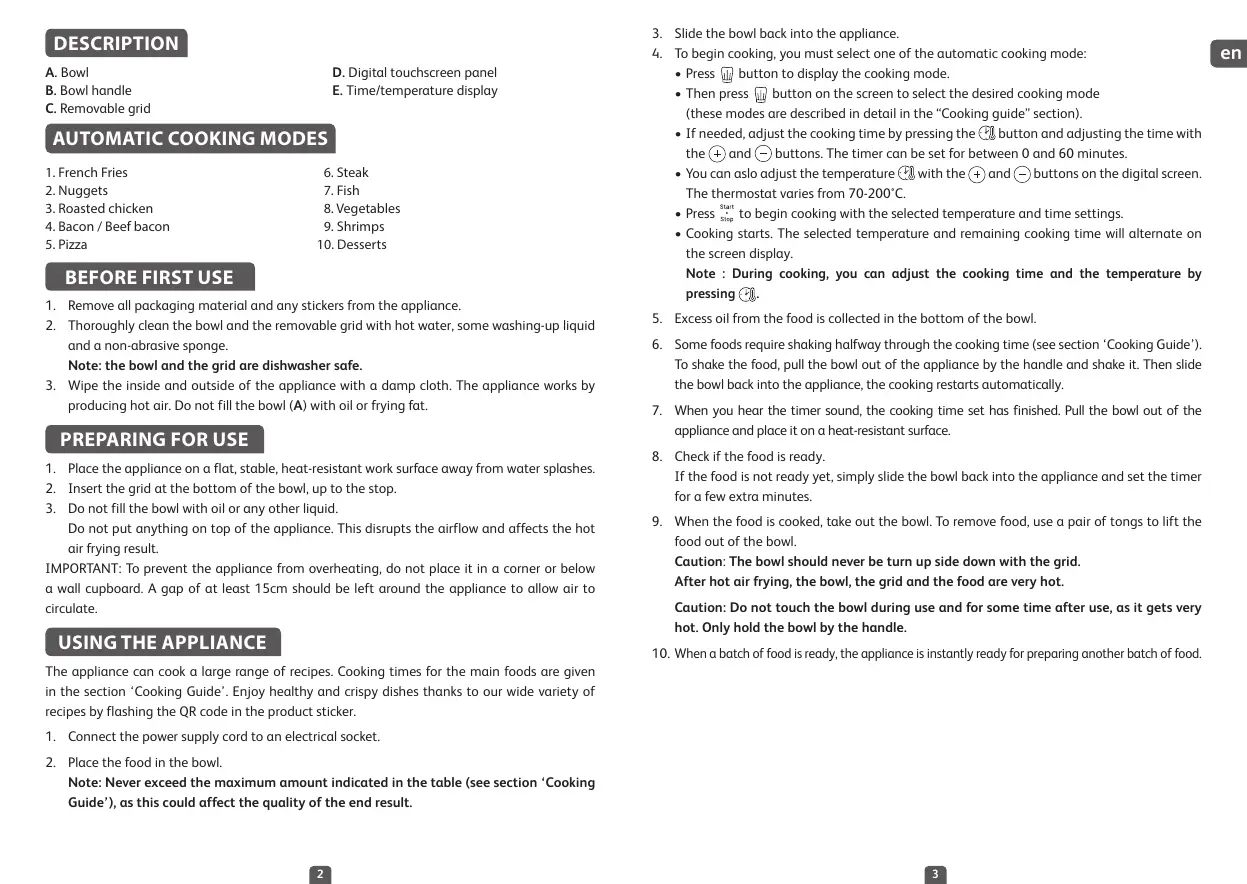 in the section ‘Cooking Guide’. Enjoy healthy and crispy dishes thanks to our wide variety of