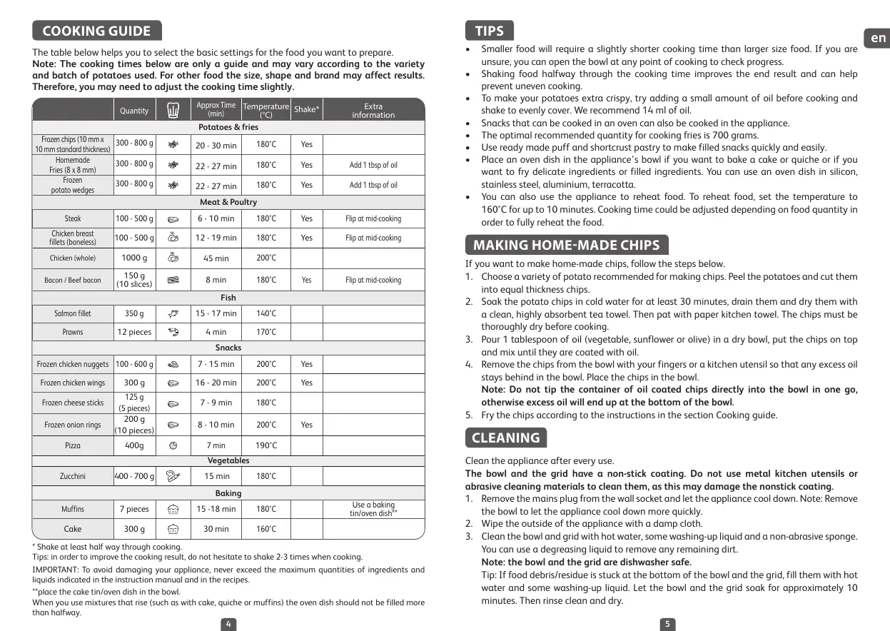 • Snacks that can be cooked in an oven can also be cooked in the appliance.