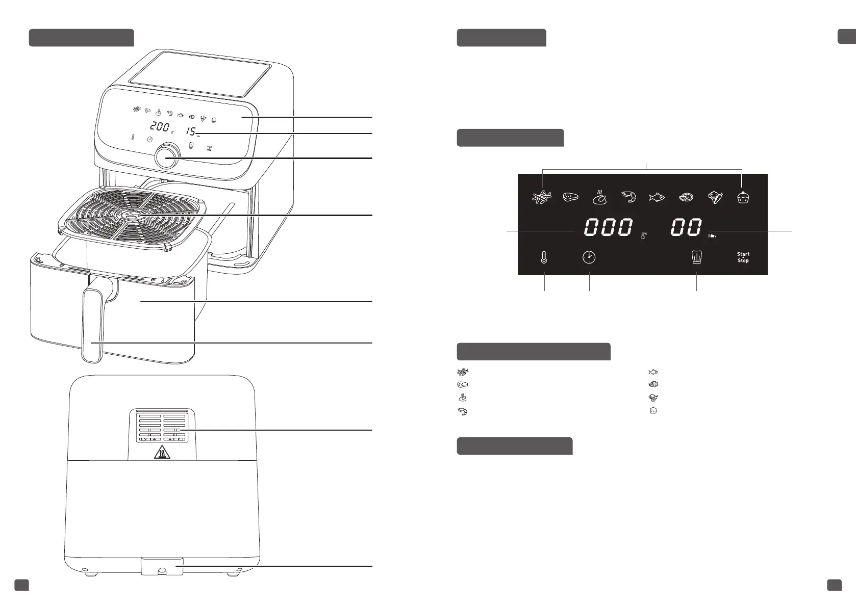 Note: The appliance works by producing hot air. Do not fill the basket with oil or