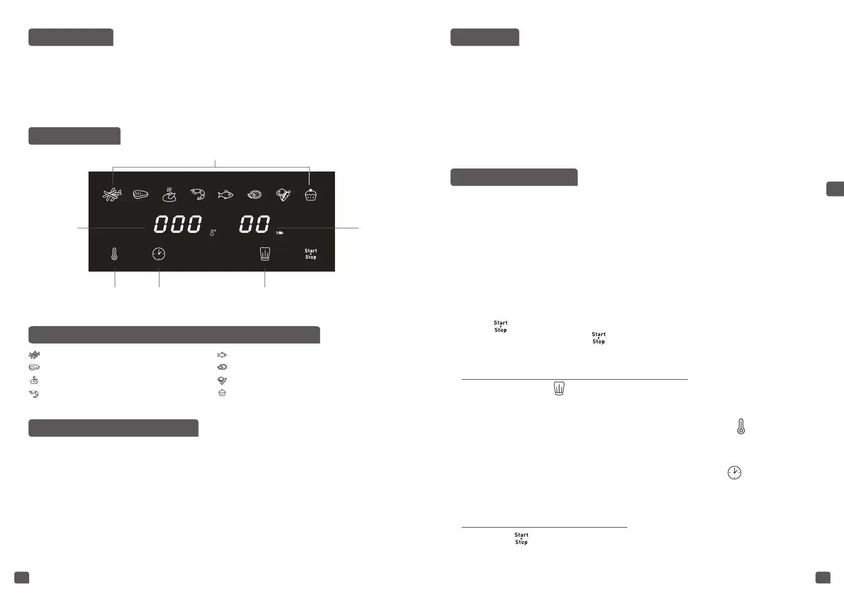 funktioner er beskrevet detaljeret i afsnittet "Tilberedningsvejledning").
