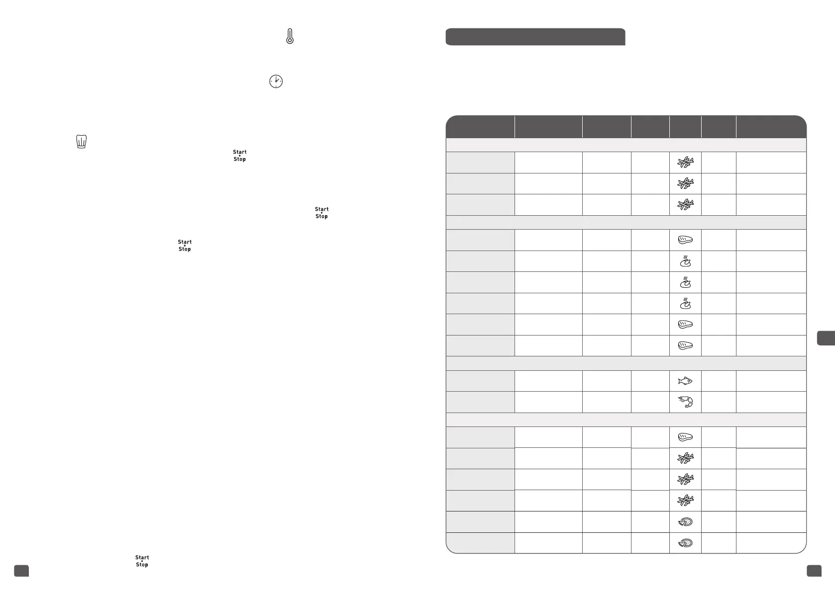 Uwaga: Poniższe czasy gotowania są jedynie wskazówkami i mogą się różnić