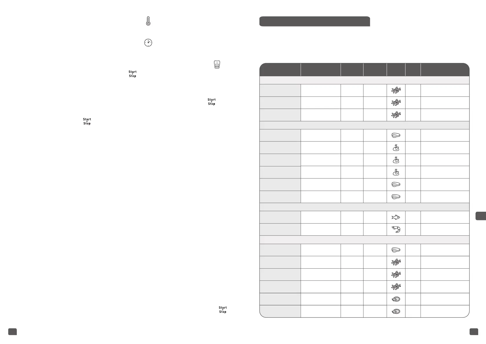 Tabuľka nižšie vám pomôže vybrať základné nastavenia pre jedlo, ktoré chcete pripraviť.