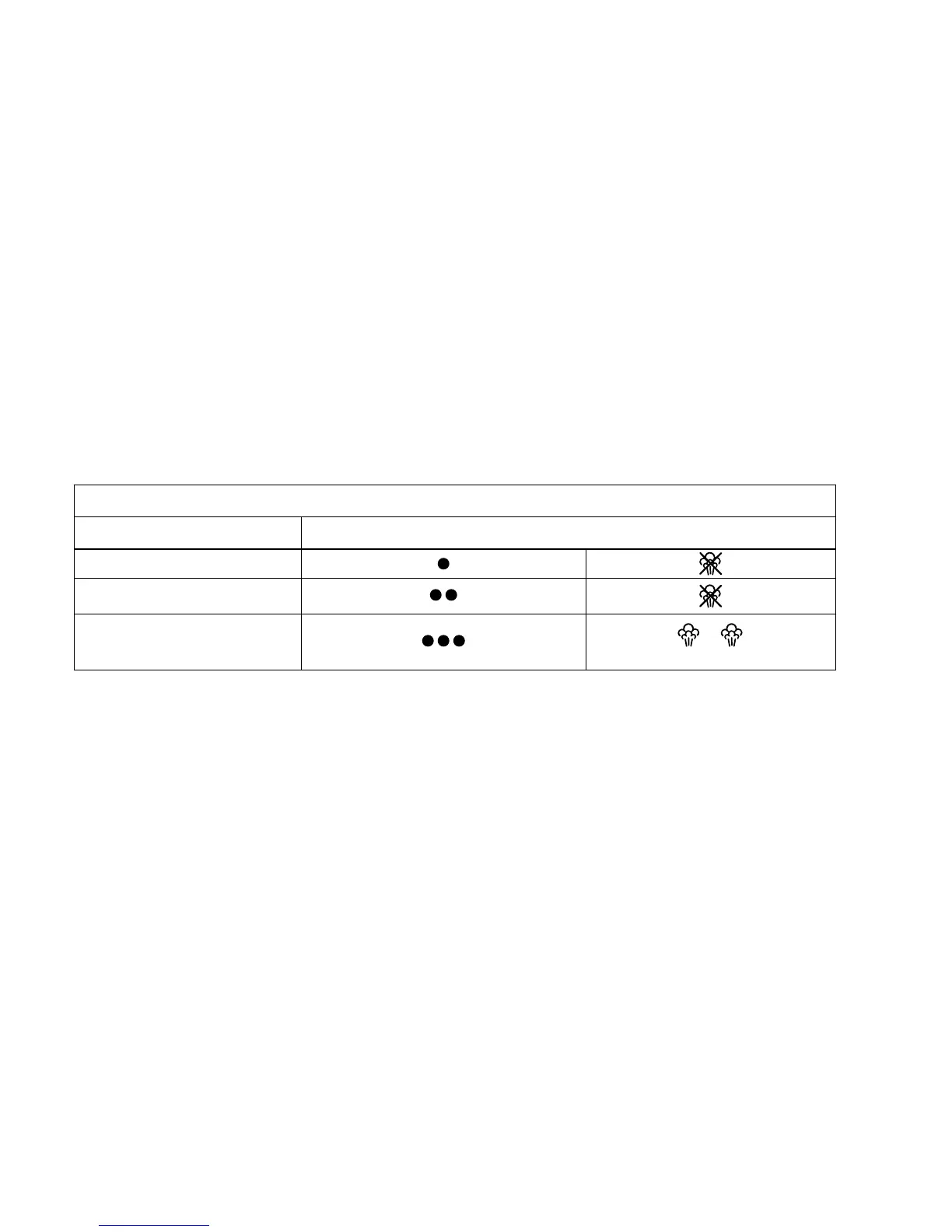 • The steam can only be used on 3 dots setting area (see below table). For other garments (1 dot and 2 dots) the