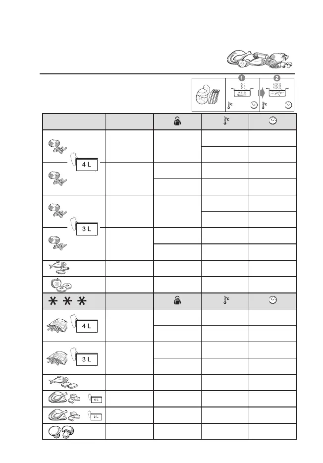 TEFAL Filtra Pro - Deep Frying Cooking Guide; Food Cooking Parameters