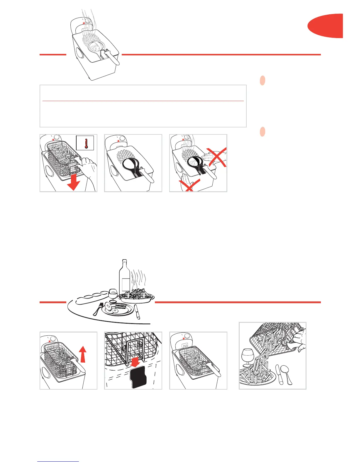 descendre doucement dans l’huile. Descendre le panier trop vite peut causer des