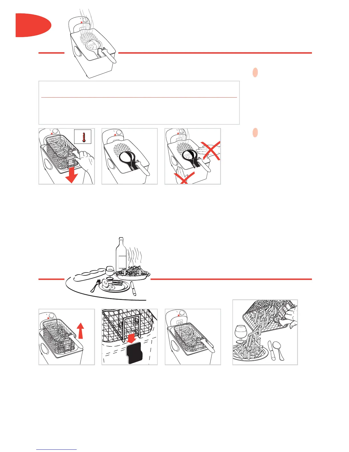 •Vul het frituurmandje. Niet overladen. Vul het mandje nooit boven het aangegeven