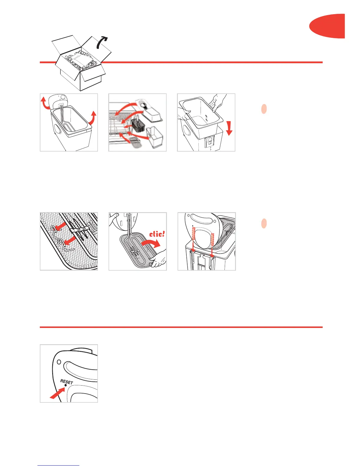 • Klappen Sie den Frittierkorbgriff bis zum hörbaren Einrasten vollständig auf.