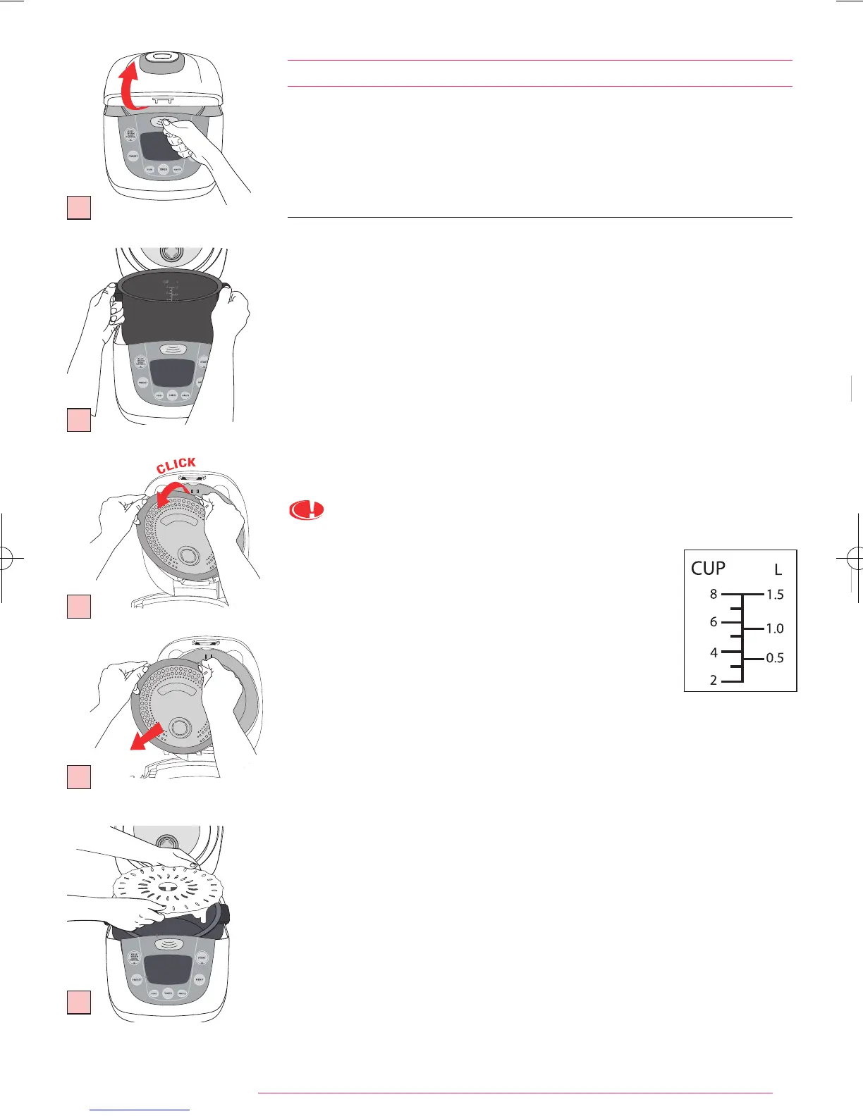 • Put the already rinsed rice into the bowl and fill it with water to the corresponding