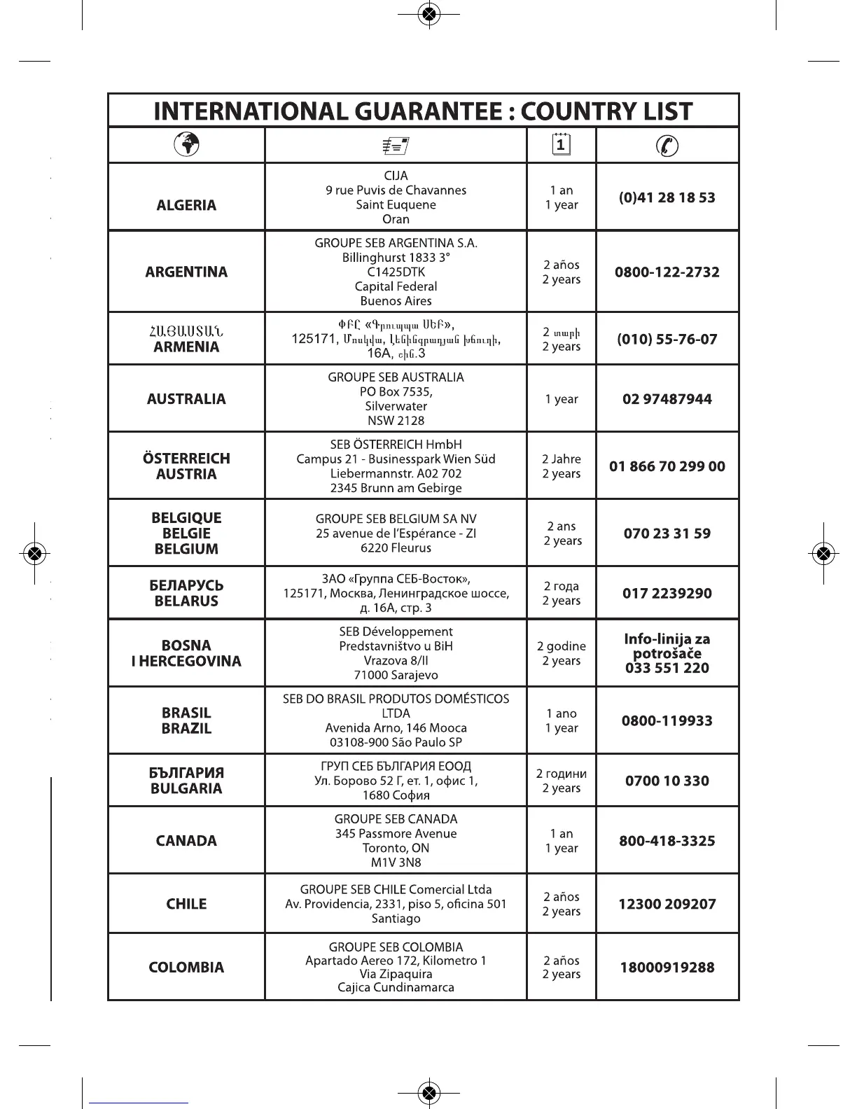 INTERNATIONAL GUARANTEE : COUNTRY LIST