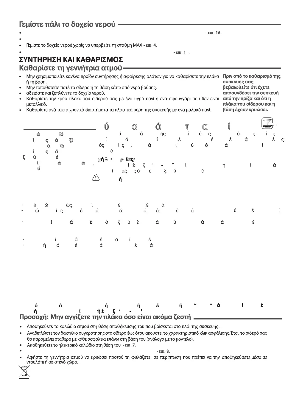 Απενεργοποιήστε, κατόπιν αποσυνδέστε το ατμοσίδερο από το ρεύμα και ανοίξτε το κάλυμμα του δοχείου