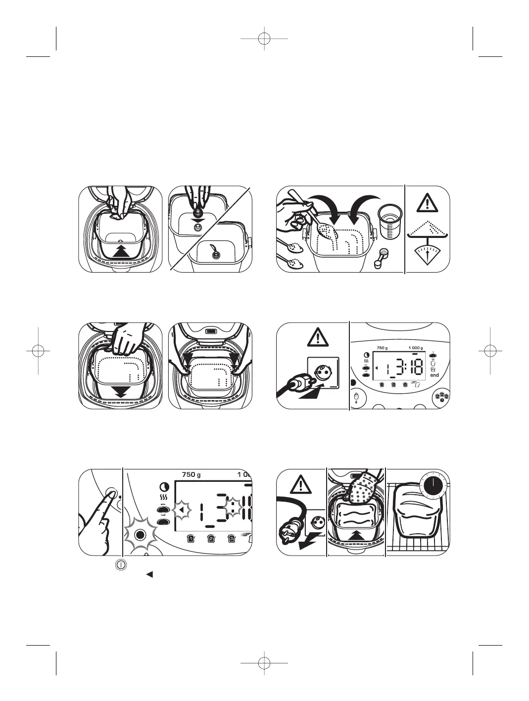 Close the lid. Plug in the breadmaker and switch