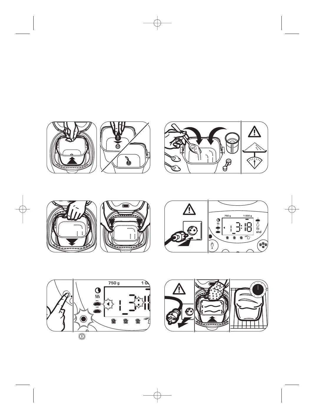 Sæt brødformen i apparatet. Tryk på formen, så