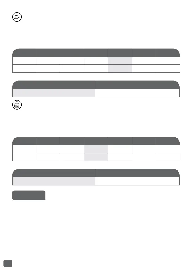 • Hieronder vindt u de vermogenniveaus en olietemperaturen die met elk
