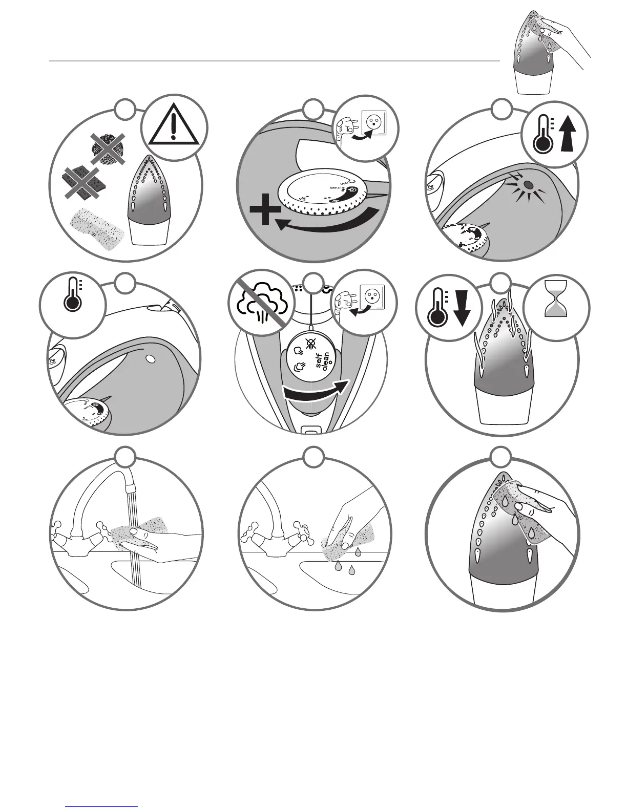 *DE Reinigung der Bügelsohle • FR Nettoyage de la semelle • NL Reinigen van de strijkzool •