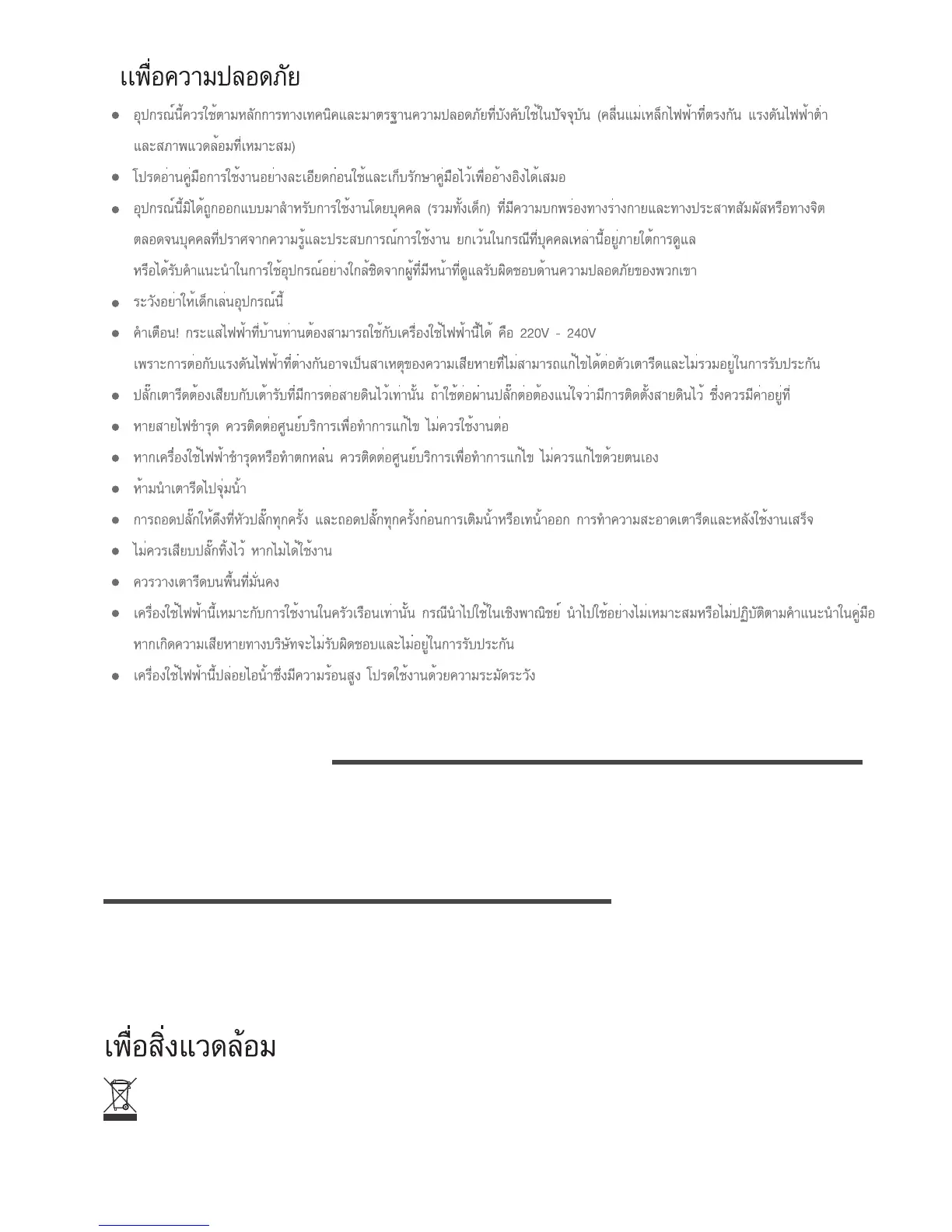 (เนื่องจากมีสารละลายหรือสารแขวนลอยที่อาจก่อให้เกิดคราบสีน้ำตาลหรือความเสียหายอื่นแก่เตารีด)ดังนี้