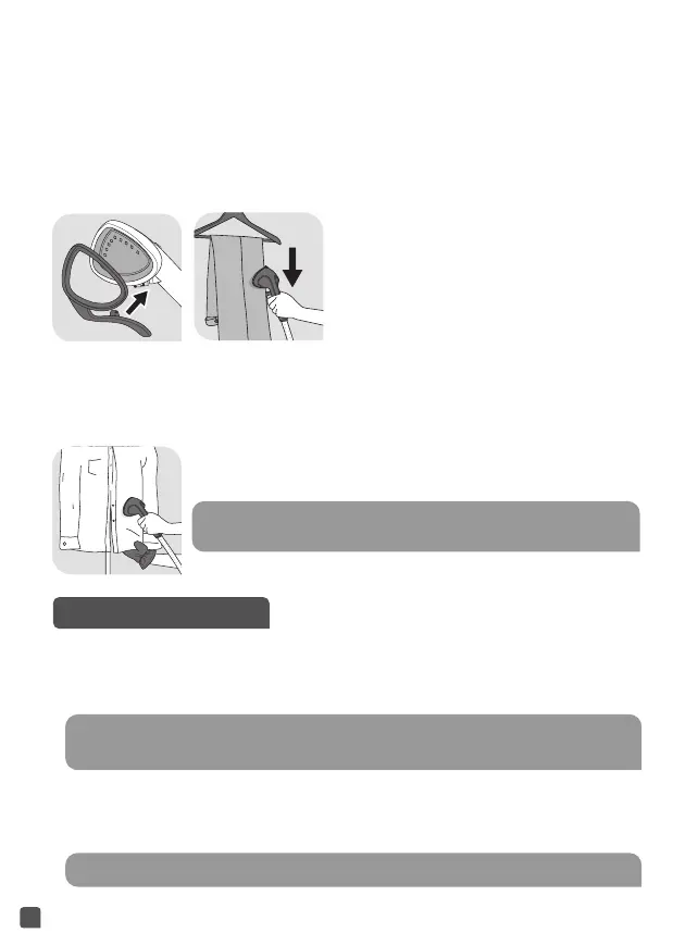• Accrochez la tête vapeur en position verticale sur le crochet.