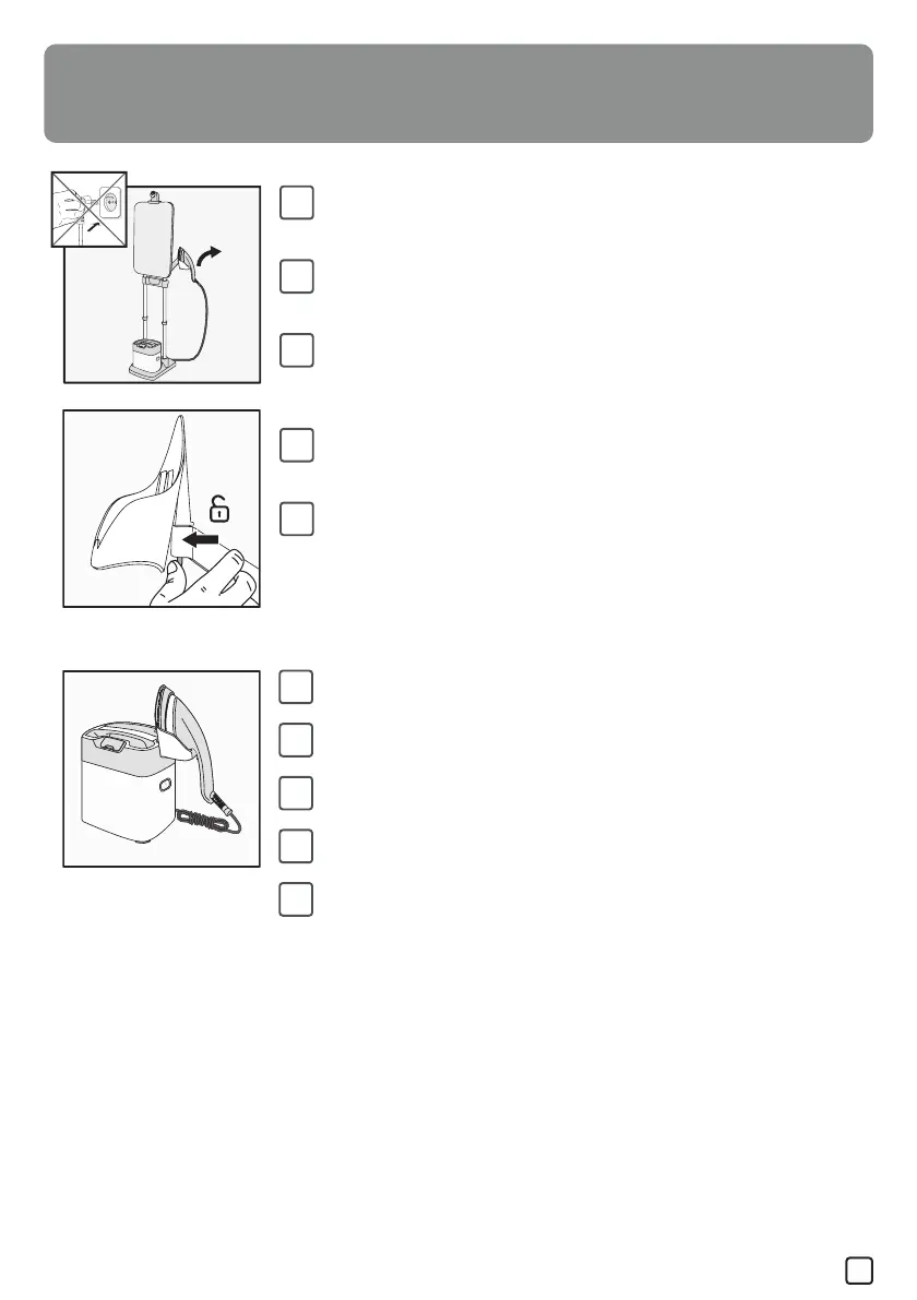 Desbloquee el soporte de la plancha empujando la tira de plástico