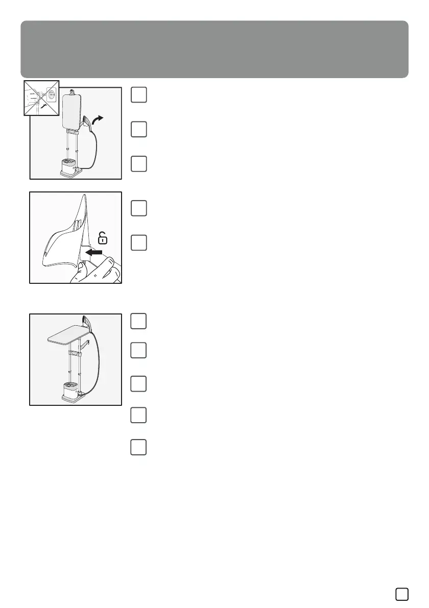 proužku. Vyjměte opěrku žehličky spolu se žehličkou.