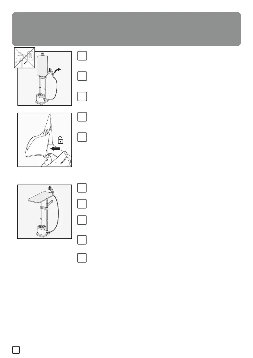 Ustaw deskę poziomo i umieść żelazko wraz z podstawą na haku na