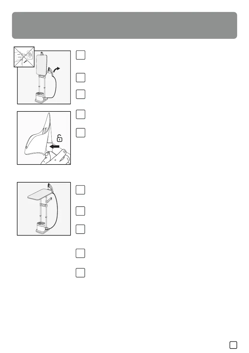 és a vasalótartót az akasztókampóra. A kioldáshoz nyomja meg az