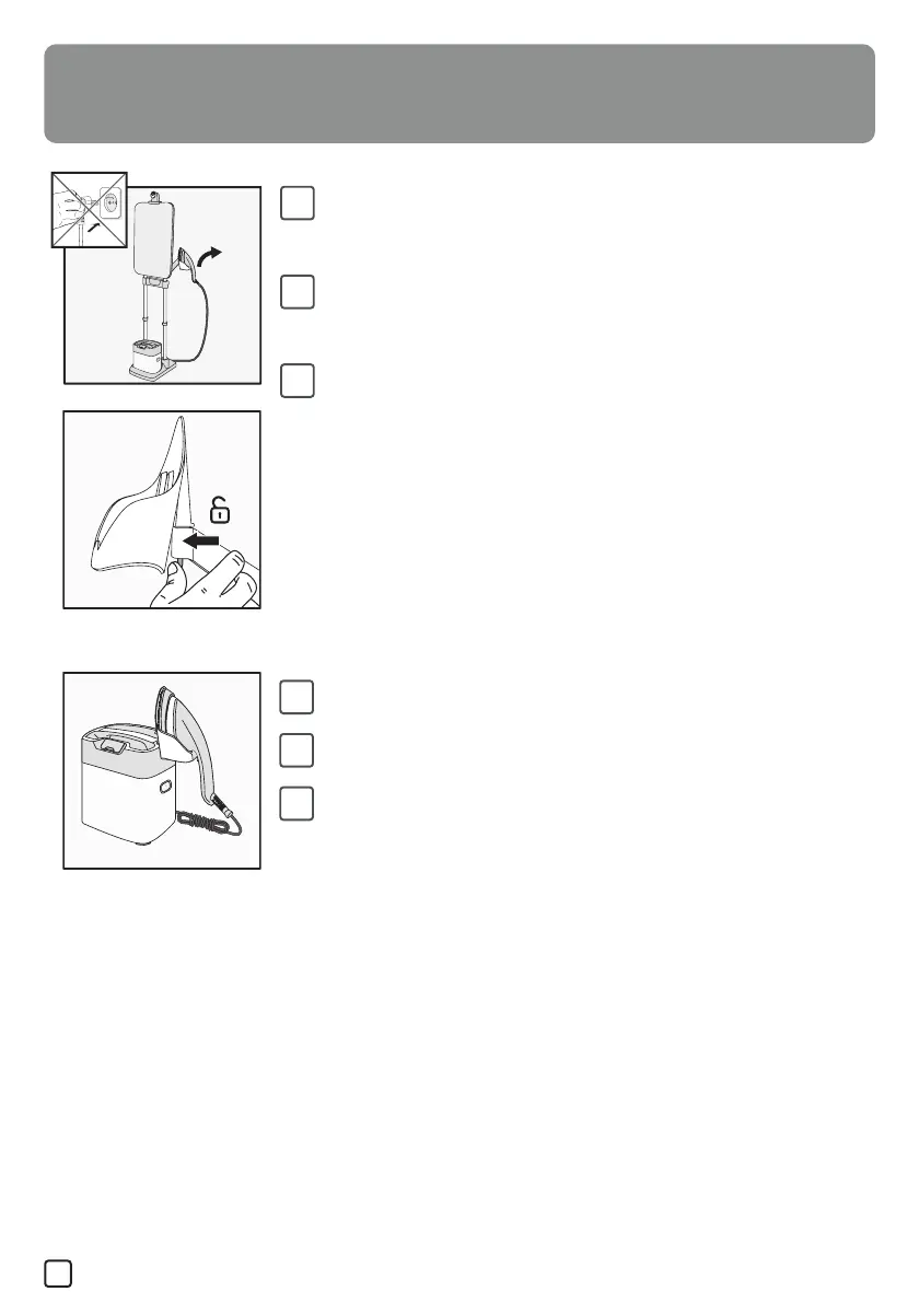 Postavite peglu i površinu za odlaganje pegle na parnu jedinicu.
