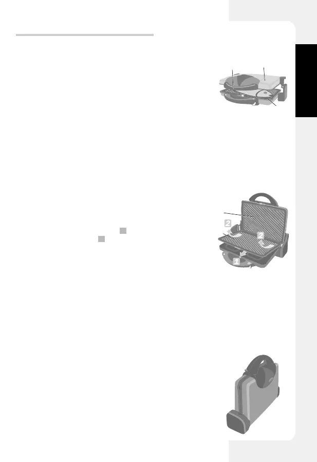 Não toque na placa grill inferior (5) para fechar o aparelho