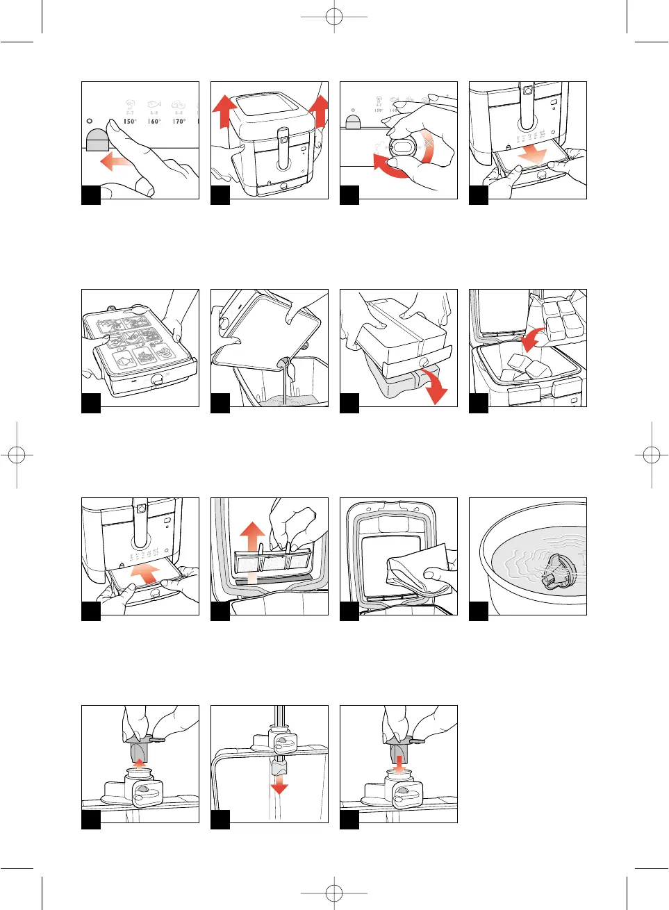 TEFAL OLEOCLEAN - Filtration, Drainage and Oil Storage; Automatic Oil Filtration System; OIL BOX Container Usage; Dismantling the Fryer