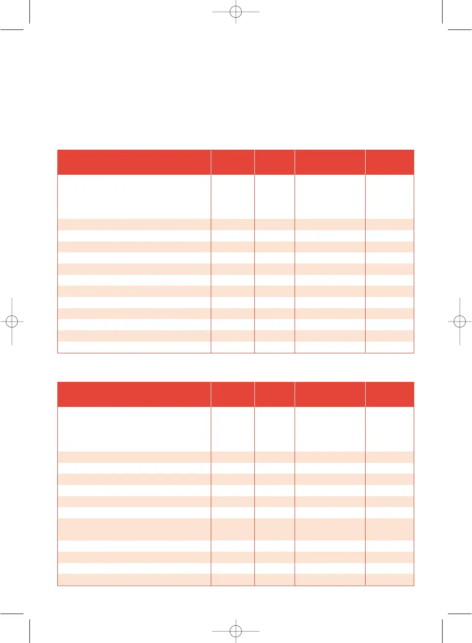 Tabela dla żywności mrożonej