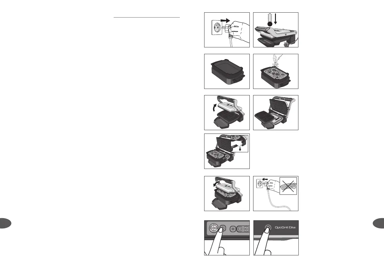 • Pred uporabo z obeh strani dobro očistite zgornjo ploščo za žar in pekač.
