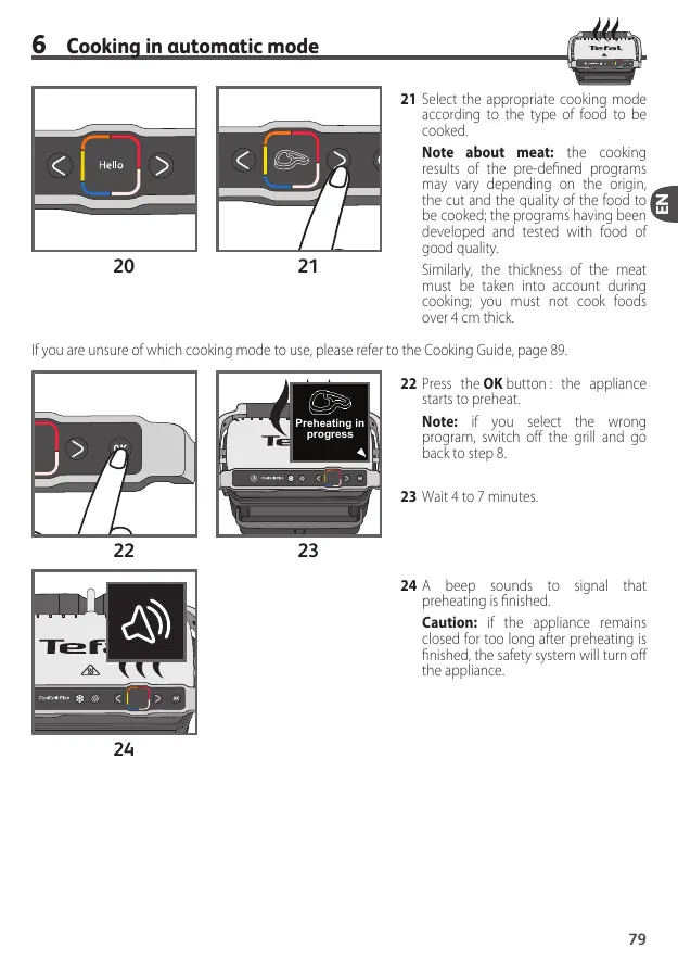 21 Select the appropriate cooking mode