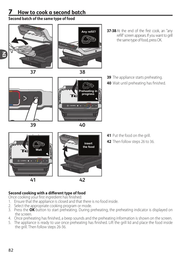5. The appliance is ready to use once preheating has finished. Lift the grill lid and place the food inside
